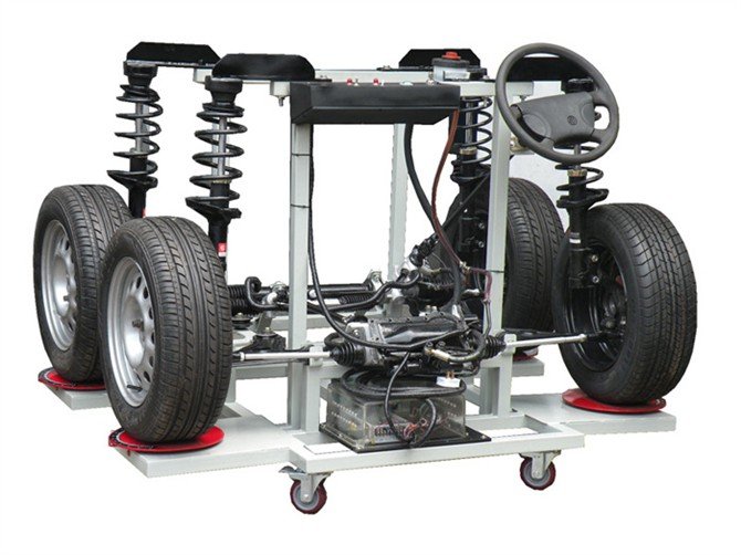 主要組成:前后懸架、 方向機、輪胎、 助力泵、轉(zhuǎn)向電機、方向盤、壓力表、轉(zhuǎn)向刻度盤、座椅、可移動臺架,配套使用說明書和實驗指導書等。主要功能:1.可模擬汽車在不同車速時四輪轉(zhuǎn)向的工作情況,并配有轉(zhuǎn)交盤可顯示轉(zhuǎn)向角度的大小,可進行動力轉(zhuǎn)向和非動力轉(zhuǎn)向?qū)嶒?,配合四輪定位儀可做四輪定位實驗;2.通過拆裝實習,充分學習轉(zhuǎn)向系的結(jié)構(gòu)原理,裝配技巧,掌握轉(zhuǎn)向系統(tǒng)的調(diào)整內(nèi)容、方法及組裝順序;同時可方便地檢測裝配的效果和質(zhì)量;3.演示原車轉(zhuǎn)向系統(tǒng)的工作過程及轉(zhuǎn)向系統(tǒng)基本結(jié)構(gòu)組成和工作原理;4.可進行四輪定位檢測與調(diào)整,四輪定位三要素的調(diào)整和作用。制作工藝:1、帶鎖定的萬向腳輪移動裝置,移動自如,便于教學;