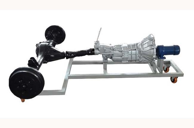 實訓(xùn)臺由傳動軸、后橋、手動變速器總成、減速機、移動式滾輪臺架組成。臺架裝有萬向輪,便于移動,性能可靠,并且有設(shè)計合理、美觀、實用等特點。通過拆裝實訓(xùn),可充分了解傳動系統(tǒng)的結(jié)構(gòu)原理,裝配技巧,同時可方便地檢測裝配的效果和質(zhì)量/