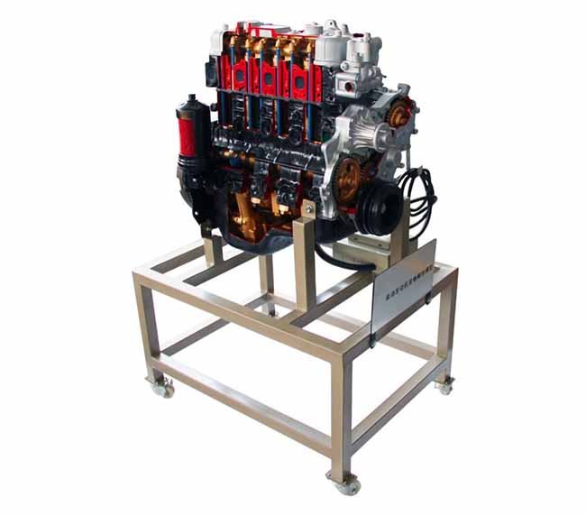 該設(shè)備采用五十鈴4JB1普通柴油發(fā)動機總成進(jìn)行剖面處理,各部件齊全,剖面位置合理,能全面展示柴油發(fā)動機內(nèi)外部結(jié)構(gòu)和部件的運動情況,適用于柴油發(fā)動機原理和機械機構(gòu)的教學(xué)。