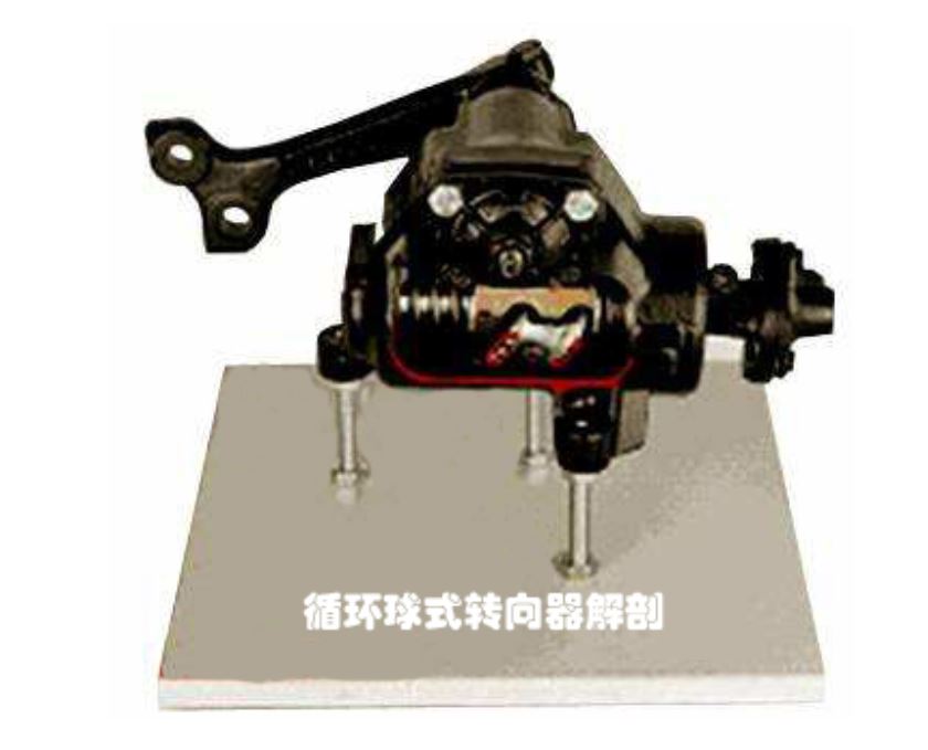 以真實(shí)汽車配件解剖 ,本臺(tái)架采用了循環(huán)球式轉(zhuǎn)向器實(shí)物進(jìn)行解剖,各零部件齊全,能夠全面的展示循環(huán)球式轉(zhuǎn)向器內(nèi)部結(jié)構(gòu)。通過(guò)巧妙的解剖和各剖面噴涂不同顏色,使循環(huán)球式轉(zhuǎn)向器內(nèi)部的機(jī)械結(jié)構(gòu)和相互之間的裝配關(guān)系清楚的顯現(xiàn)在外面