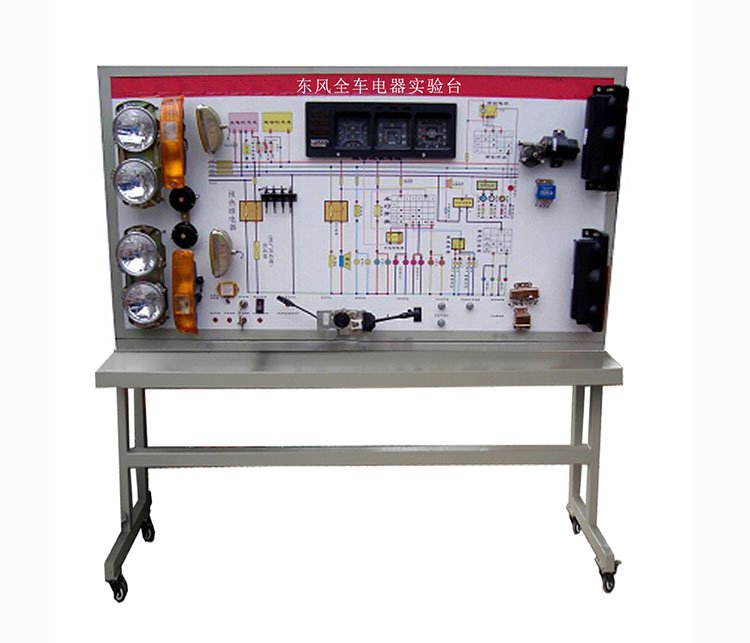 本實驗臺以東風全車電器實驗臺 系統(tǒng)實物為基礎,由移動臺架、示教面板二部分組成。適用于中高等職業(yè)學院和培訓機構的汽車全車電器系統(tǒng)構造與維修實訓教學,能夠滿足對全車電器系統(tǒng)的結構、工作原理、故障設置及診斷的教學需要。本實驗設備操作方便,安全可靠,易于維護。