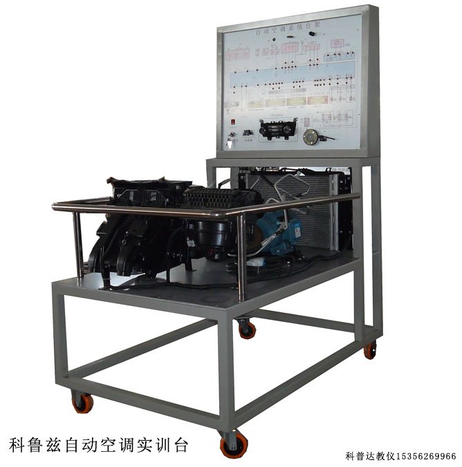 本實驗臺以科魯茲自動空調(diào)系統(tǒng)實物為基礎(chǔ),由主臺架、控制檢測臺二部分組成。適用于中等職業(yè)學(xué)院和培訓(xùn)機構(gòu)的汽車自動空調(diào)系統(tǒng)構(gòu)造與維修實訓(xùn)教學(xué),能夠滿足對自動空調(diào)系統(tǒng)的結(jié)構(gòu)、工作原理、故障設(shè)置及診斷的教學(xué)需要。本實驗設(shè)備操作方便,安全可靠,易于維護。