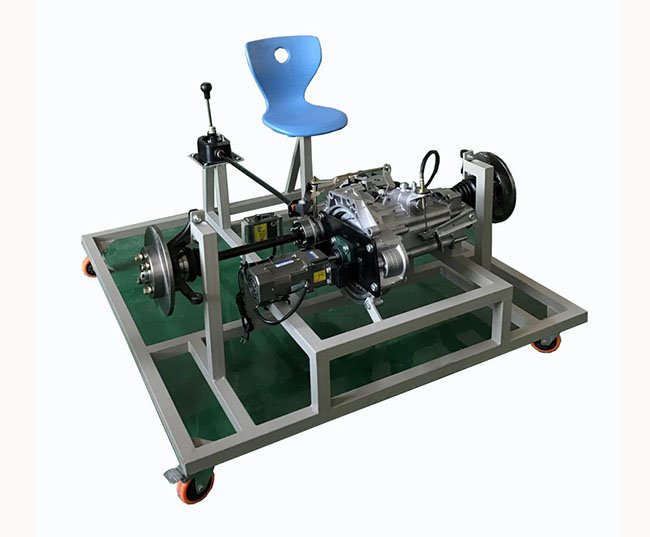 實訓臺由半軸、前橋、手動變速器總成、減速機、移動式滾輪臺架組成。臺架裝有萬向輪,便于移動,性能可靠,并且有設計合理、美觀、實用等特點。通過拆裝實訓,可充分了解傳動系統(tǒng)的結構原理,裝配技巧,同時可方便的檢測裝配的效果和質(zhì)量。
