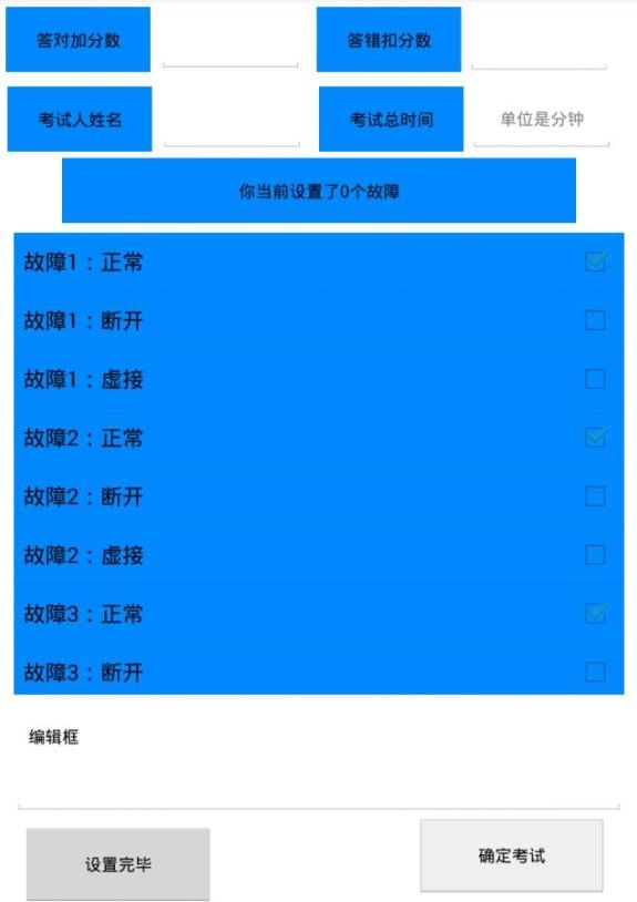 單人考核模式:教師選擇單個(gè)學(xué)生進(jìn)行考核,可設(shè)置試題考試時(shí)間及分值,學(xué)生答題后系統(tǒng)自動(dòng)將正確的故障點(diǎn)將恢復(fù)正常,適合學(xué)生技能點(diǎn)考核。