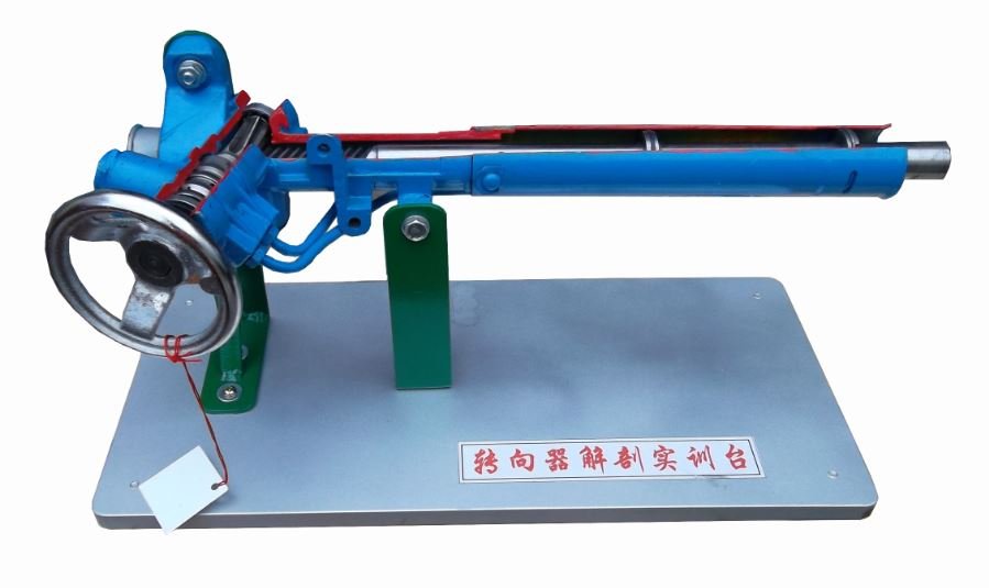 以真實(shí)汽車配件解剖 ,本臺(tái)架采用了齒輪條式助力轉(zhuǎn)向器實(shí)物進(jìn)行解剖,各零部件齊全,能夠全面的展示齒輪條式助力轉(zhuǎn)向器內(nèi)部結(jié)構(gòu)。通過巧妙的解剖和各剖面噴涂不同顏色,使齒輪條式助力轉(zhuǎn)向器內(nèi)部的機(jī)械結(jié)構(gòu)和相互之間的裝配關(guān)系清楚的顯現(xiàn)在外面
