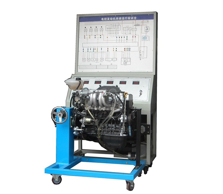 本實驗臺電控汽油發(fā)動機(jī)實物為基礎(chǔ),由拆裝翻轉(zhuǎn)臺架、控制檢測臺二部分組成。拆裝翻轉(zhuǎn)臺架提供學(xué)生進(jìn)行發(fā)動機(jī)拆卸和裝配實訓(xùn),裝配好發(fā)動機(jī)后與控制檢測臺對接,可起動運(yùn)行發(fā)動機(jī),檢驗發(fā)動機(jī)的裝配效果,并可作發(fā)動機(jī)檢測、故障設(shè)置與排除等試驗臺架使用。適用于中高等職業(yè)學(xué)院和培訓(xùn)機(jī)構(gòu)的汽車電噴發(fā)動機(jī)構(gòu)造與維修實訓(xùn)教學(xué),能夠滿足對電控汽油發(fā)動機(jī)的結(jié)構(gòu)、工作原理的教學(xué)和考核需要。本實驗設(shè)備功能齊全、操作方便,安全可靠。